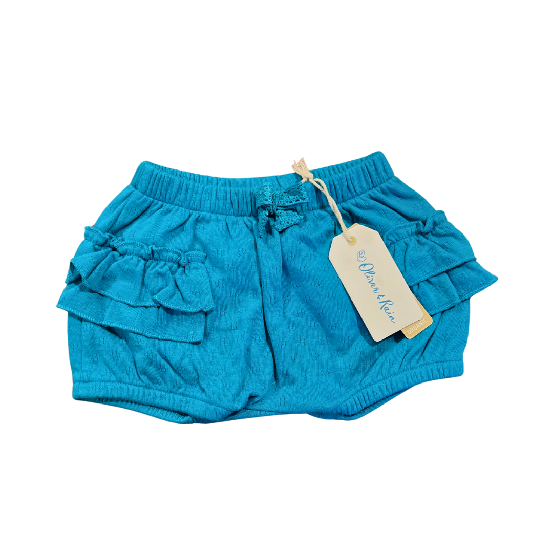 - Bubble style shorts with ruffle on front