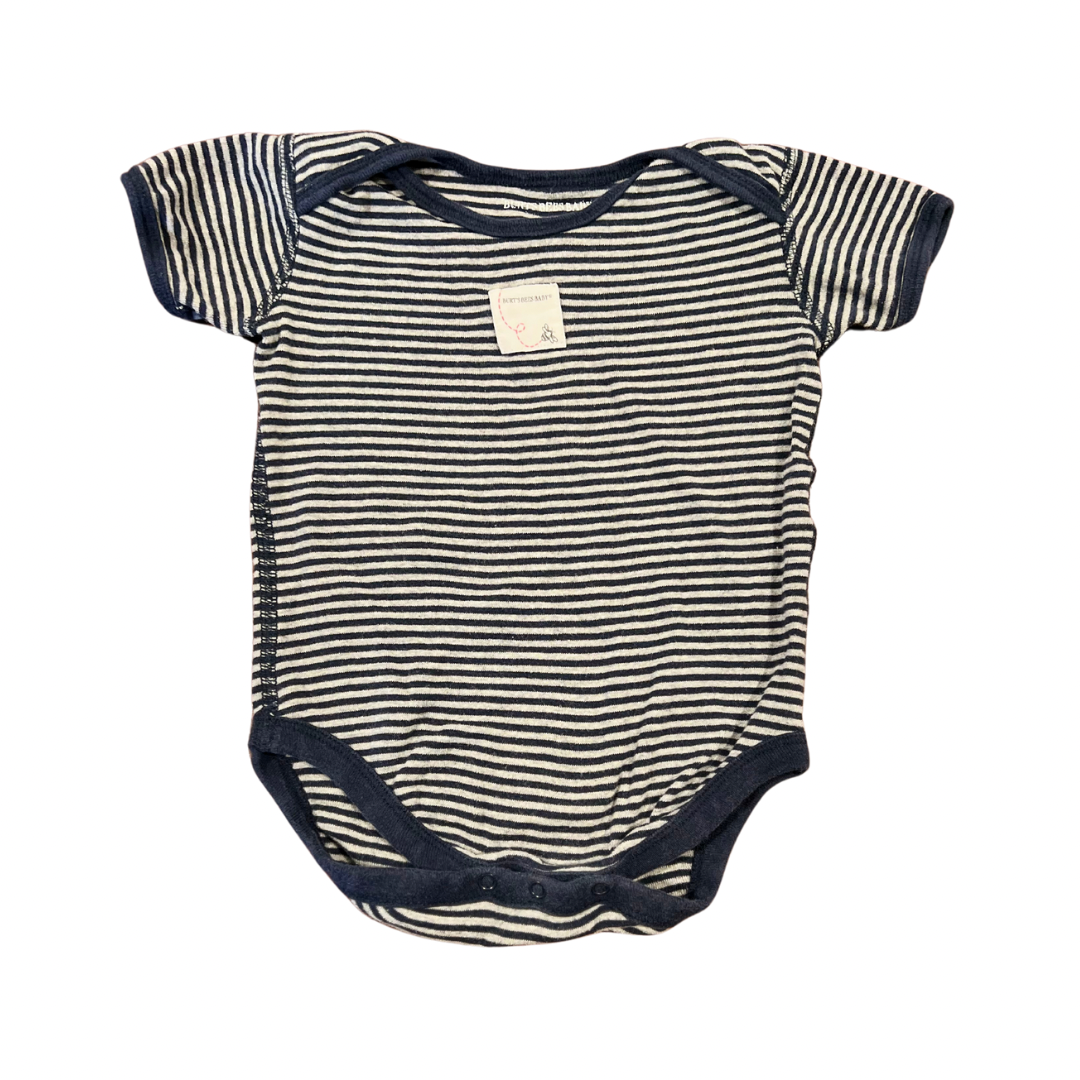 - Two short sleeve onesies - white with blue bees / navy and grey stripes